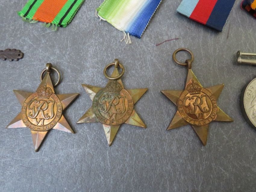 WW2 MEDAL GROUP IN POSTAL BOX, 39-45 star, Atlantic star, Burma Star, Defence & War with mid oak leaf, boxed, named to W.E. SKILLER
