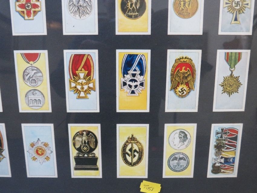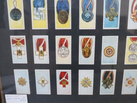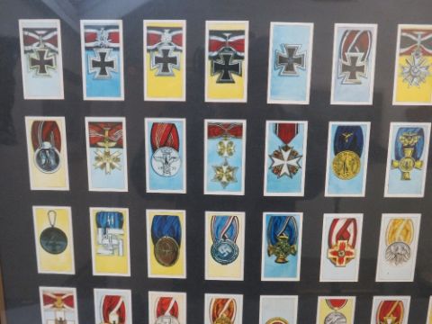 A FRAMED SET OF CIGARETTE CARDS, depicting German WW2 medals and awards, 66 x 55 cm