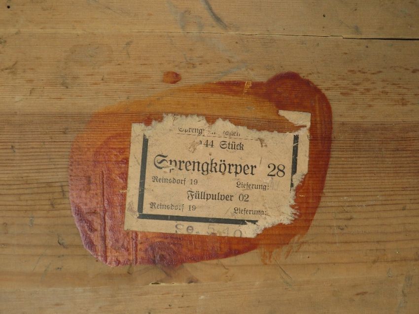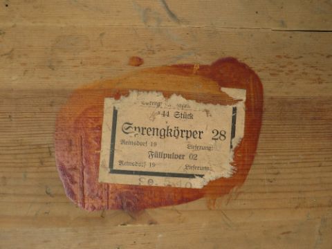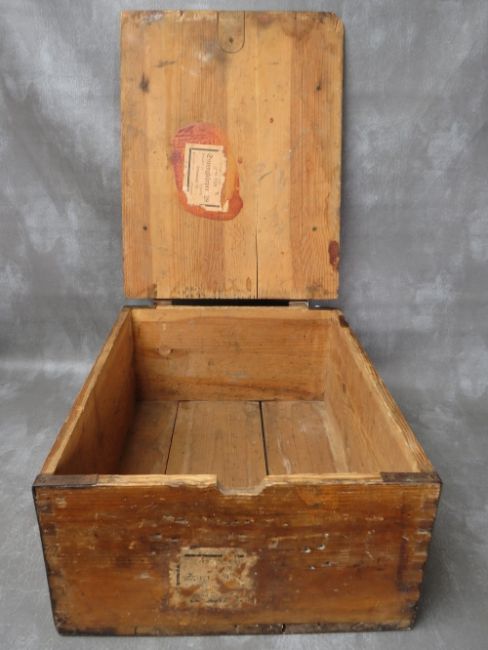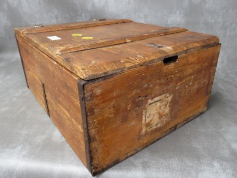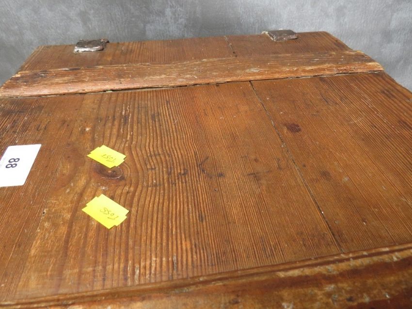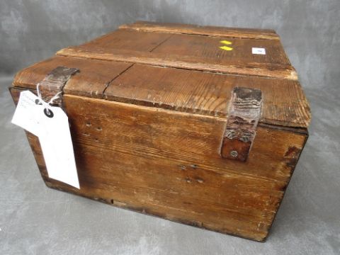 A WW2 GERMAN WOODEN GRENADE BOX, of plank construction, with leather hinges, dated 1940, 46 x 35.5 x 20 cm
