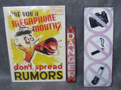 A COLLECTION OF SIGNS AND PLAQUES, to include Merchant Navy 'Cook' plaque, various danger signs etc.