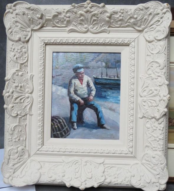 A. HAYWORD (XX). Modern British school, 'Fishermen St. Ives', signed and inscribed verso, oil on canvas board, framed, 24 x 19 cm