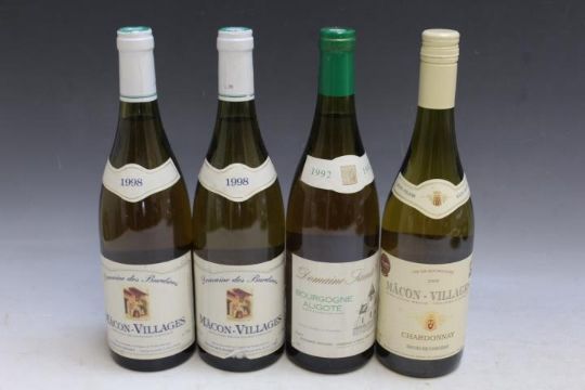 4 BOTTLES OF FRENCH WINES TO INCLUDE 2 BOTTLES OF DOMAINE DES BURDINES MACON-VILLAGES