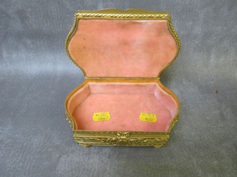 A LATE 19TH / EARLY 20TH CENTURY DECORATIVE GILT METAL BOX, with central cartouche, H 5.5 cm, L 15 cm, W 9 cm