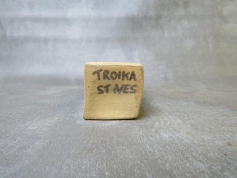 A TROIKA TALL SQUARED POTTERY VASE, with an abstract pattern to all sides, signed to the base, H 24 cm