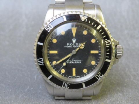 ROLEX - A GENTLEMANS STAINLESS STEEL OYSTER PERPETUAL SUBMARINER WRISTWATCH - REF 5513, black luminous dial with triangular rectangular and circular markers, dial marked 600ft - 200m Submariner, on an associated stainless steel bracelet with fold-over clasp, case Dia. 40mm, no box or papers Condition: Ticks on winding, Holds time on a 5 minute test. Working capacity unknown We do not offer a guarantee on the working capacity of any timepiece