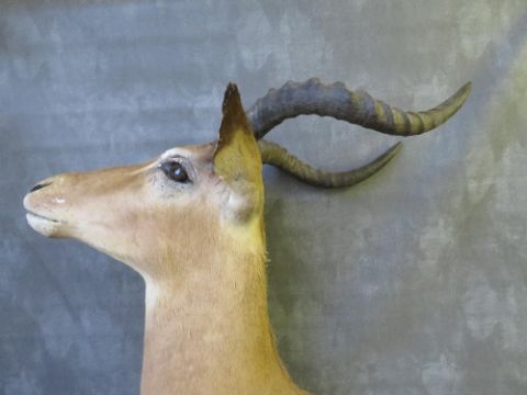 TAXIDERMY - AN AFRICAN SPRINGBOK, neck mount, looking straight ahead, on a wooden plinth, H 60 cm