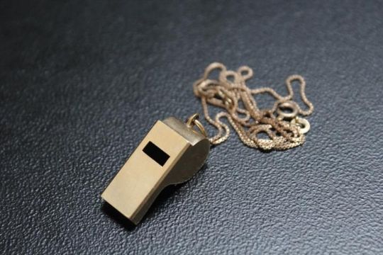 A NOVELTY HALLMARKED 9 CARAT GOLD PENDANT IN THE FORM OF A WHISTLE, on a 9 ct gold chain, approx combined weight 9.1g, D 3 cm
