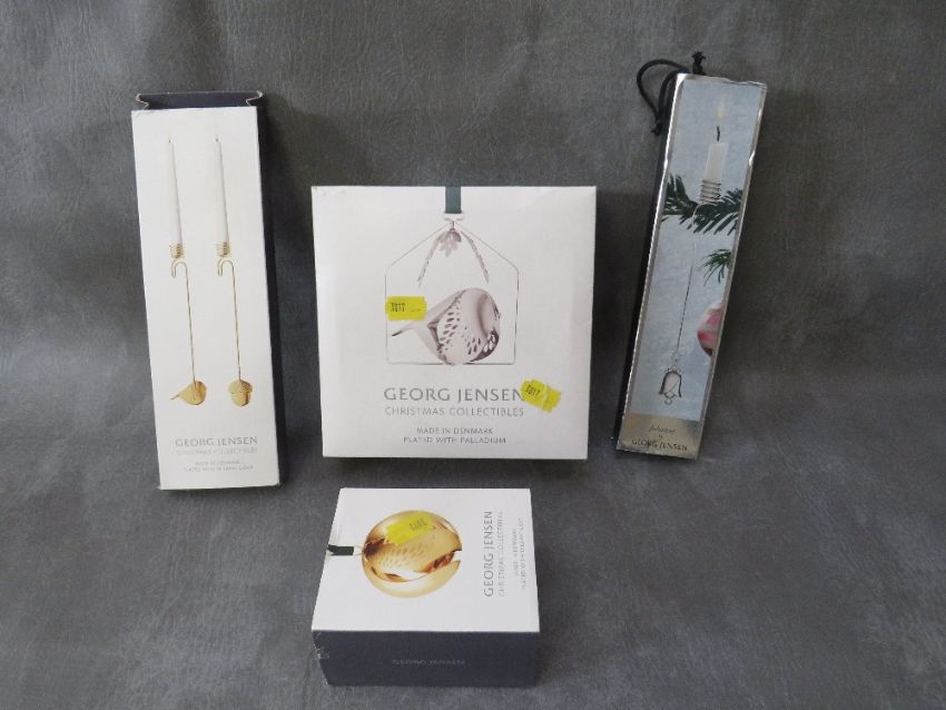 GEORG JENSEN - A SELECTION OF CHRISTMAS COLLECTABLES, to include a set of acorn & wild bird candleholders, a Christmas ball candle holder, Christmas mobile Winter bird etc.