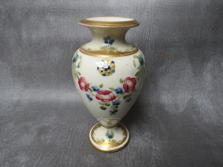 A WILLIAM MOORCROFT FOR MACINTYRE & Co FLORIANWARE BALUSTER VASE, with stylised flowers and printed marks to the base, H 15 cm
