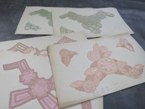 A COLLECTION OF VINTAGE CARDED SILK INSERTS FOR SILK UNDERWEAR, together with a collection of old embroidery silk and floss plus jet and sequinned clothing embellishments