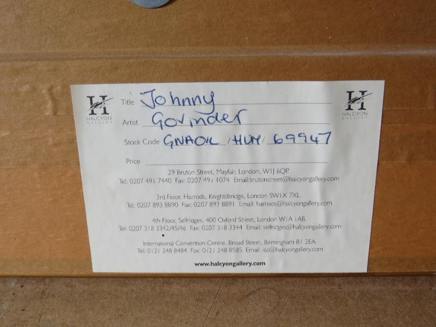 GOVINDER NAZRAN (1964-2008). 'JOHNNY', oil on canvas, signed left, framed, 39 x 87 cmProvenance - Halcyon Gallery, Birmingham, with Halcyon Gallery valuation 2004 £3950 - Very good condition with no obvious damage that we can see. Colour good. Frame also in good condition with nothing obvious that we can see.