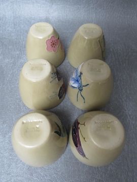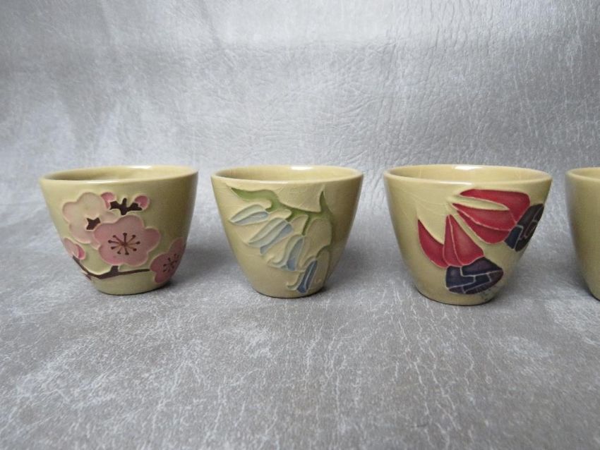 A SET OF SIX MOORCROFT SAKI CUPS, commissioned in 1988 by The ATO Galleries of Tokyo, impressed marks to the base, H 4.7 cm (6)