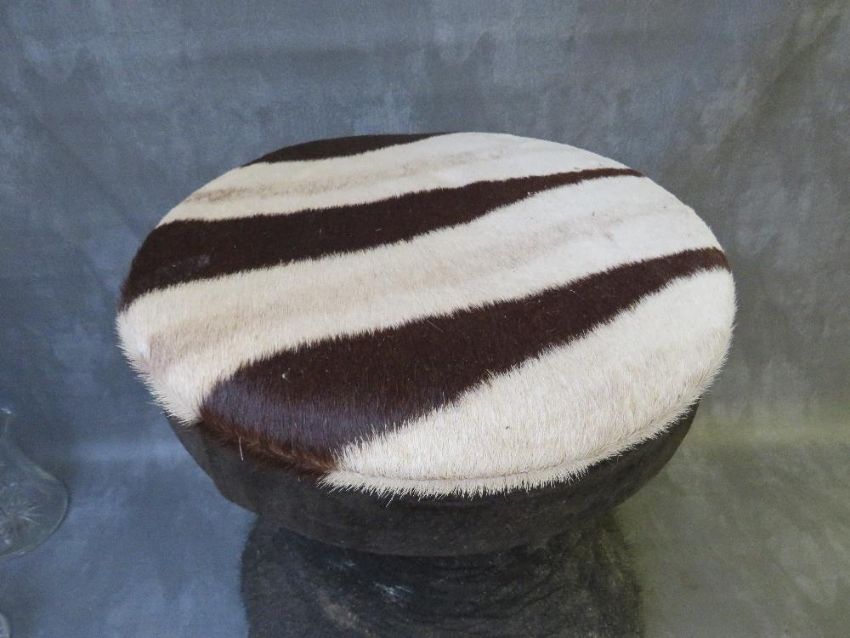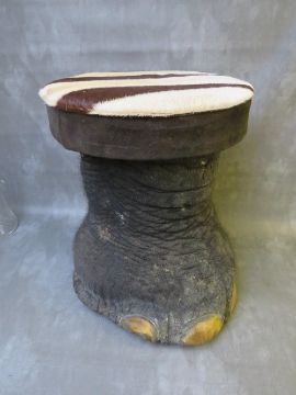 TAXIDERMY - A 19TH CENTURY ELEPHANT FOOT WITH SKIN SEAT - LOXODONTA CYCLOTIS, H 49 cm, W 38 cm, D 41 cm