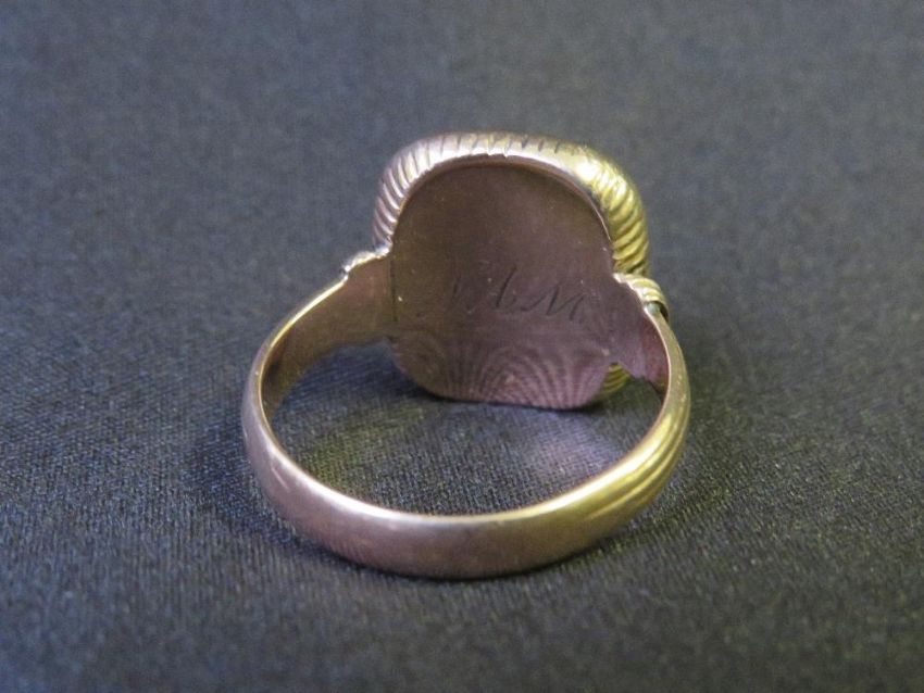 A GEORGIAN GOLD INTAGLIO CORNELIAN RING, of shaped rectangular form, unmarked and untested, approx. weight 6 g, ring size - Q½