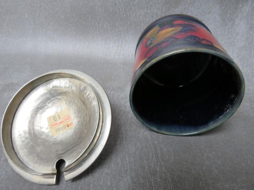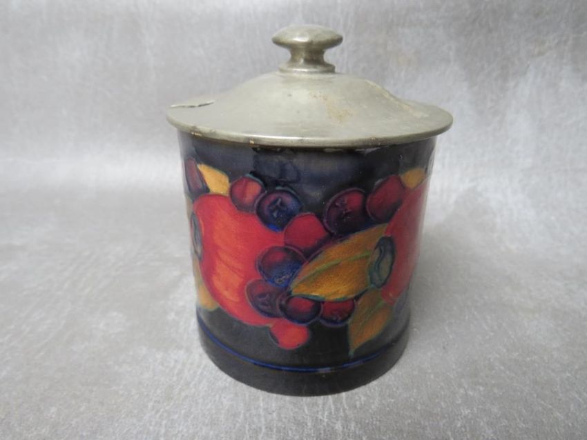 A MOORCROFT POMEGRANATE PRESERVE JAR WITH TUDRIC PEWTER COVER, H 10 cm