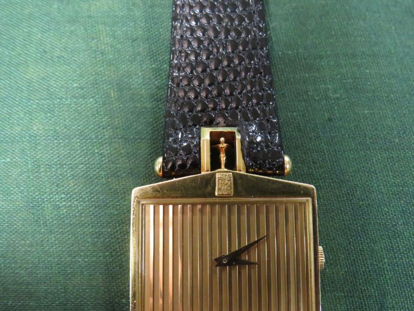 A GENTLEMANS 18K GOLD CORUM ROLLS ROYCE 'SPIRIT OF ECSTASY' WRIST WATCH, in the form of a Rolls Royce radiator grill, on a Corum leather strap, the case stamped '555 95 371 660 18K, no box or papers