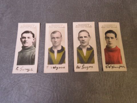FOUR 1924 WOLVERHAMPTON WANDERERS PLAYERS PAULTON WOLVES & OFFICIALS FOOTBALL TRADE CARDS, comprising N. George, G. Gelgood, V. Gregory and J.W. Hampton