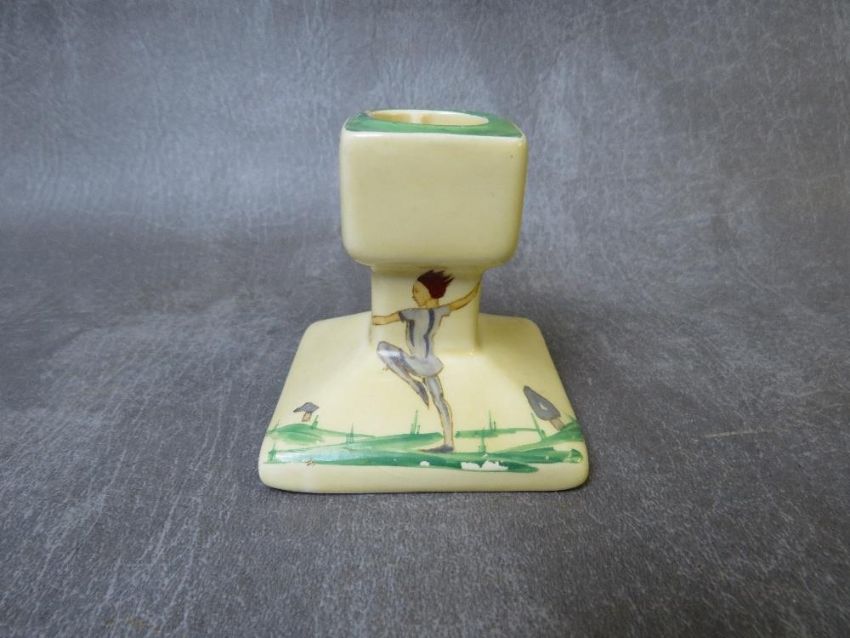 A MID 20TH CENTURY SUSIE COOPER 'PUCK' SQUAT LOW CANDLESTICK, printed marks to the base, H 7 cm