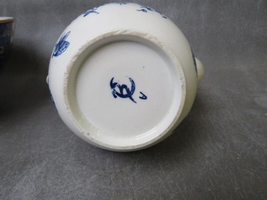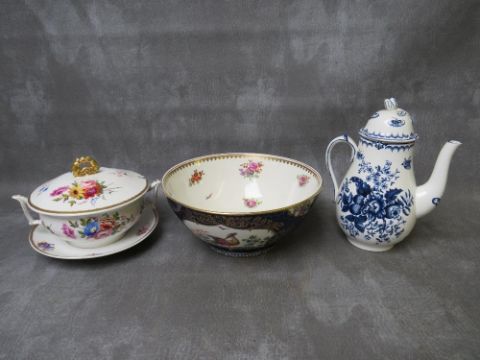 A COLLECTION OF EARLY PORCELAIN TO INCLUDE A WORCESTER STYLE FRUIT BOWL, blue and white coffee pot and a Chamberlains Worcester tureen (3) Condition appears good on all pieces with no obvious damage or restoration.