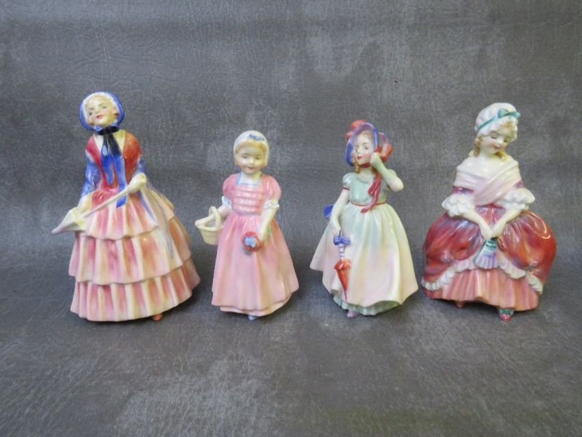 A ROYAL DOULTON 'BABIE' FIGURINE HN1679, 'Tinkle Bell' figure HN1677, 'Biddy' figure HN1513 and 'Peggy' figure HN1941 (4)