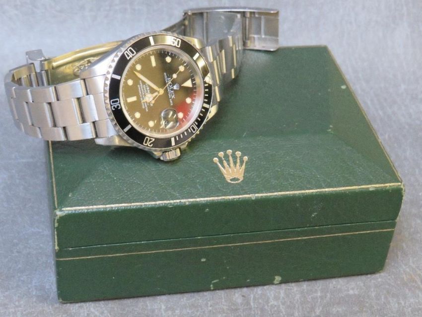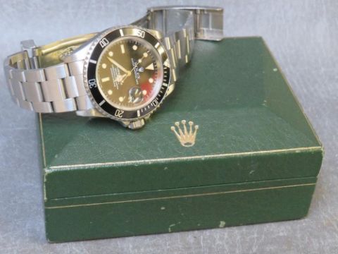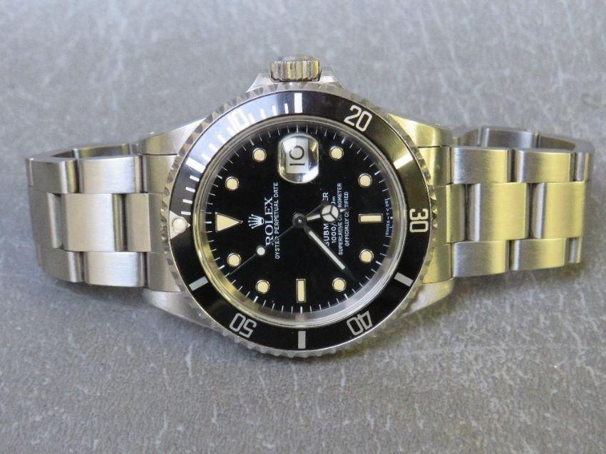 ROLEX - A STAINLESS STEEL OYSTER PERPETUAL SUBMARIMER DATE WRISTWATCH, black dial with luminous triangular, rectangular and circular markers, dial marked Submariner 1000FT - 300M Superlative Chronometer Officially Certified, on a stainless steel oyster bracelet with fold-over clasp, bracelet marked 93150, 501B, case Dia. 40 mm, original box, no papers Conditon:Ticks on winding, Holds time on a 5 minute test. Working capacity unknown We do not offer a guarantee on the working capacity of any timepiece