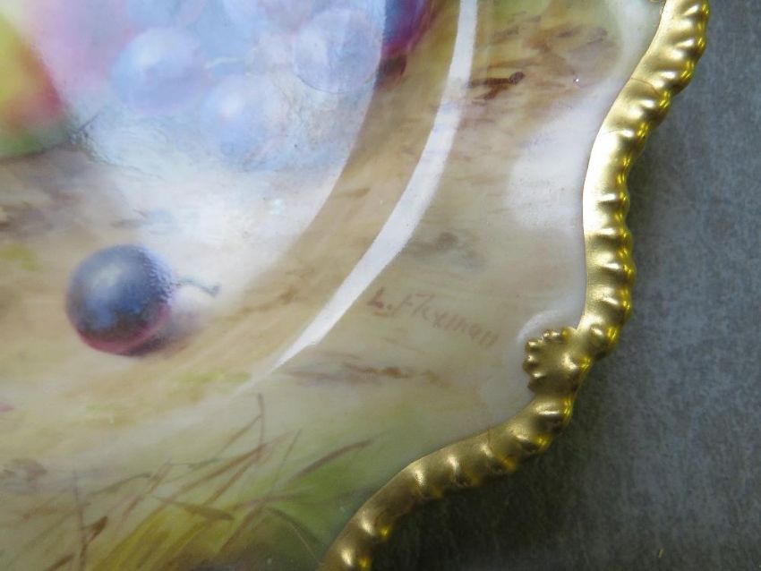 A ROYAL WORCESTER CABINET PLATE DECORATED BY L. FLEXMAN, painted with fruit and gilt decoration, printed puce marks to the reverse, Dia. 22 cm  Condition: A couple of tiny areas of paint loss on left hand side between 9 & 10 o’clock.