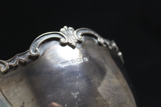 A HALLMARKED SILVER FOOTED BOWL BY AARON LUFKIN DENNISON - BIRMINGHAM 1936, approx weight 415g, H 13.75 cm