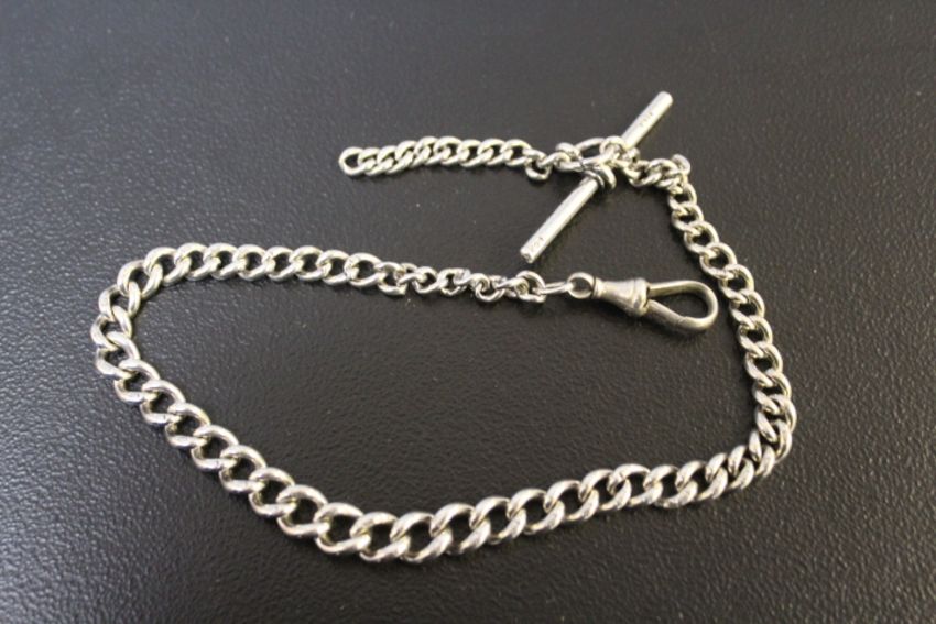 A HALLMARKED SILVER GRADUATED LINK ALBERT CHAIN, L 32 cm, 28.3g