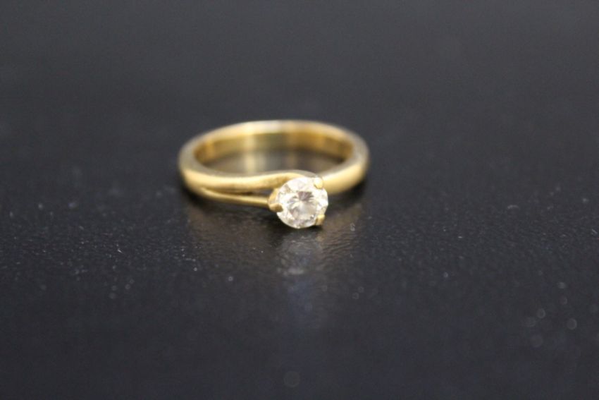 A HALLMARKED 18 CARAT GOLD DIAMOND SOLITAIRE RING, half carat, approx weight 5.1g, ring size O 1/2