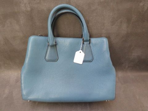 A MICHAEL KORS WEDGWOOD BLUE LEATHER HAND BAG, with twin carry handles and detachable shoulder strap, white metal hardware, H 23 cm, W 30 cm, D 12 cm