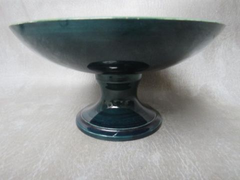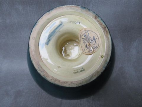 A WILLIAM MOORCROFT HIBISCUS PATTERN TAZZA, with impressed and printed marks to base with original sticker, H 9.5 cm, Dia. 18.5 cm