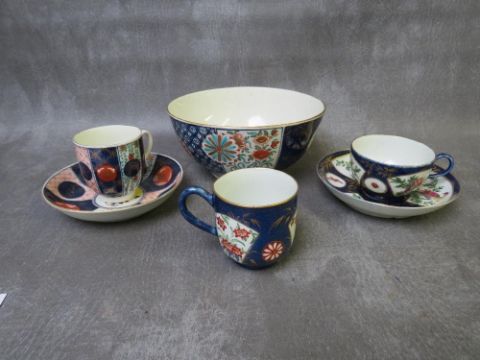 A COLLECTION OF ASSORTED CERAMICS,to include a circular Oriental style bowl with character marks to the base, together with two cabinet cups and saucers and one individual cup