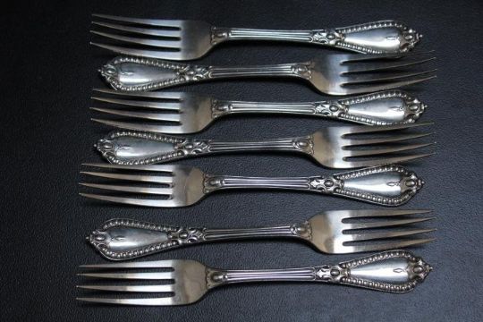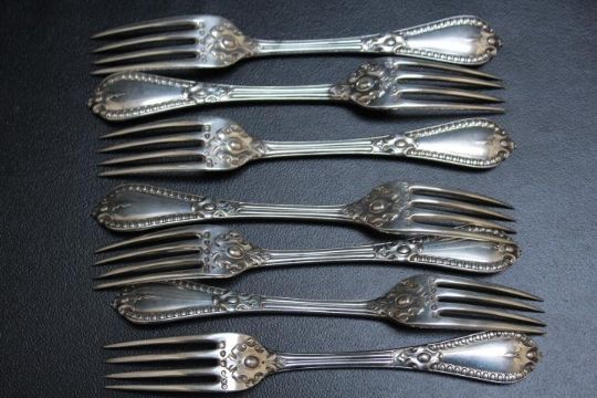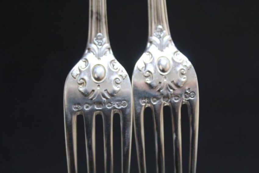 CHAWBER & C0 - A SET OF HALLMARKED SILVER DECORATIVE DOUBLE STRUCK FORKS BY GEORGE ADAMS - LONDON 1853, approx combined weight 435g, L 17.5 cm