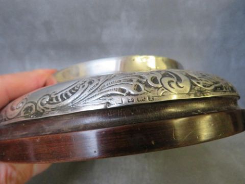 A HALLMARKED SILVER CIRCULAR MOUNTED BAROMETER - BIRMINGHAM 1943?, Dia. 18 cm, S/D Minus glass