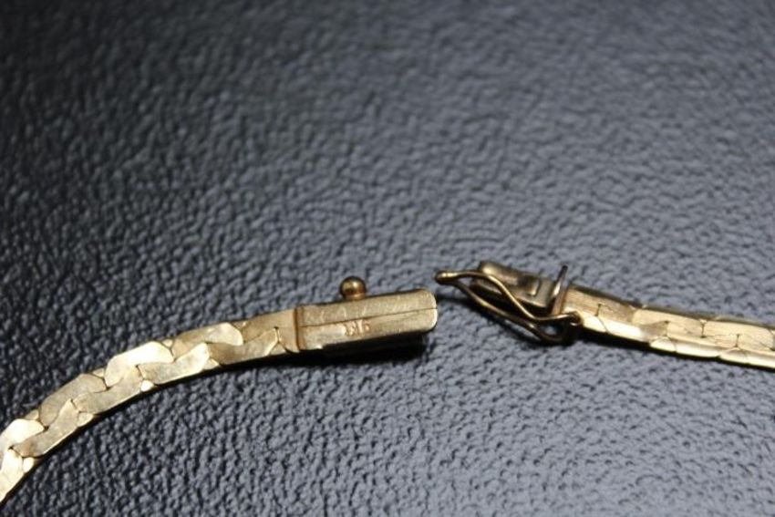 A HALLMARKED 9 CARAT GOLD FLAT LINK NECKLACE, approx weight 13.1g, L 39 cm