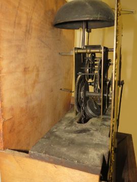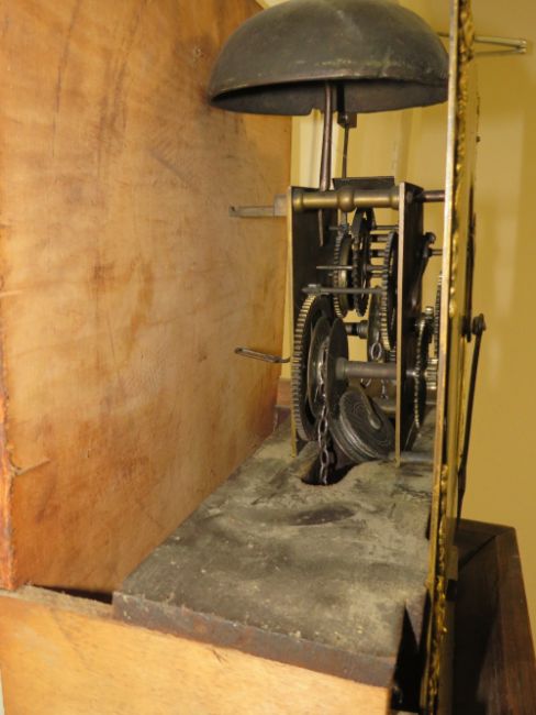 JOHN ADAMS - CAKEMORE - AN EARLY OAK CASED BRASS FACED CLOCK, with 30 hour movement, single weight, H 205 cm