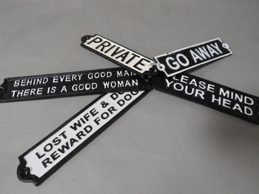 **Five cast rectangular signs**
