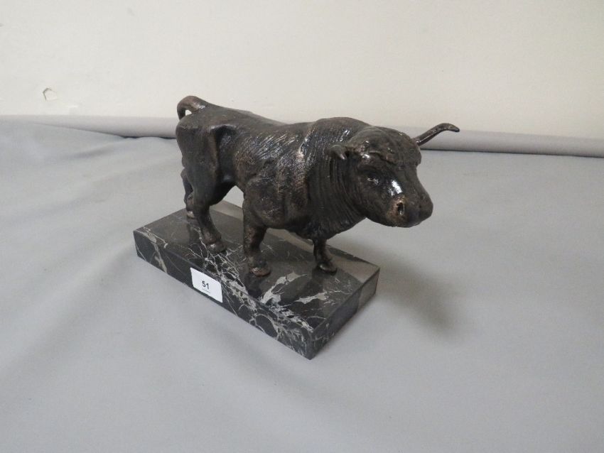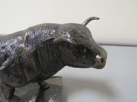 **A bull figure on marble base**