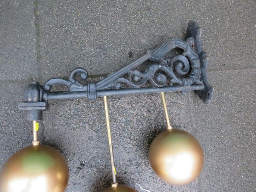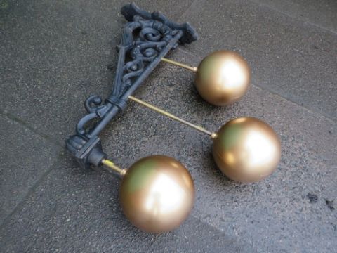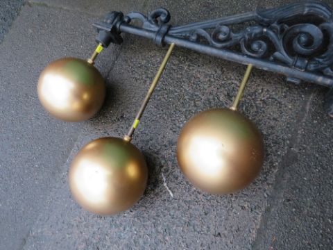 A large pawnbrokers sign with cast iron wall bracket, W 76 cm, H 92 cm