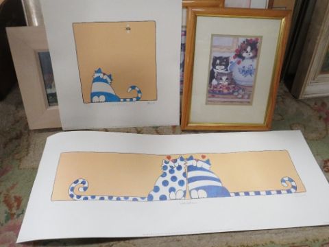 A selection of various prints and pictures to include two Linda Jane Smith cat prints and four limited edition signed cat prints
