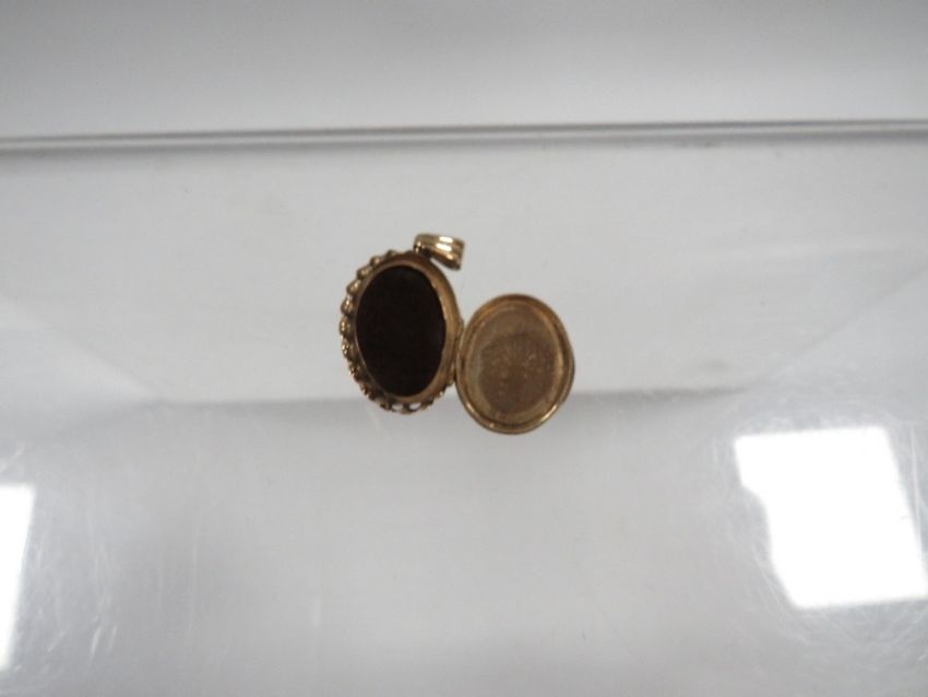A hallmarked 9 carat gold pendant locket set with rubies, approx weight 2.8g