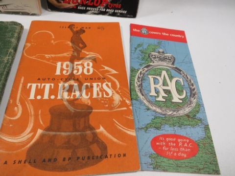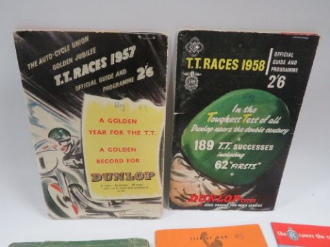 T.T. races 1957 and 1958 official programmes, 1958 T.T. race Shell oil supplement, and other transport items