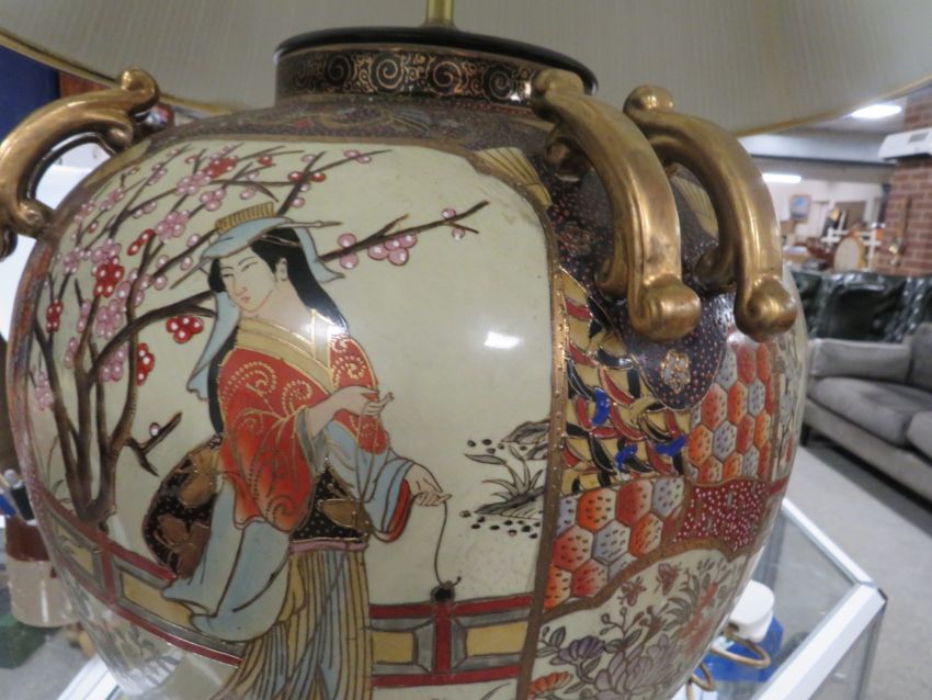 A large Oriental style lamp on stand