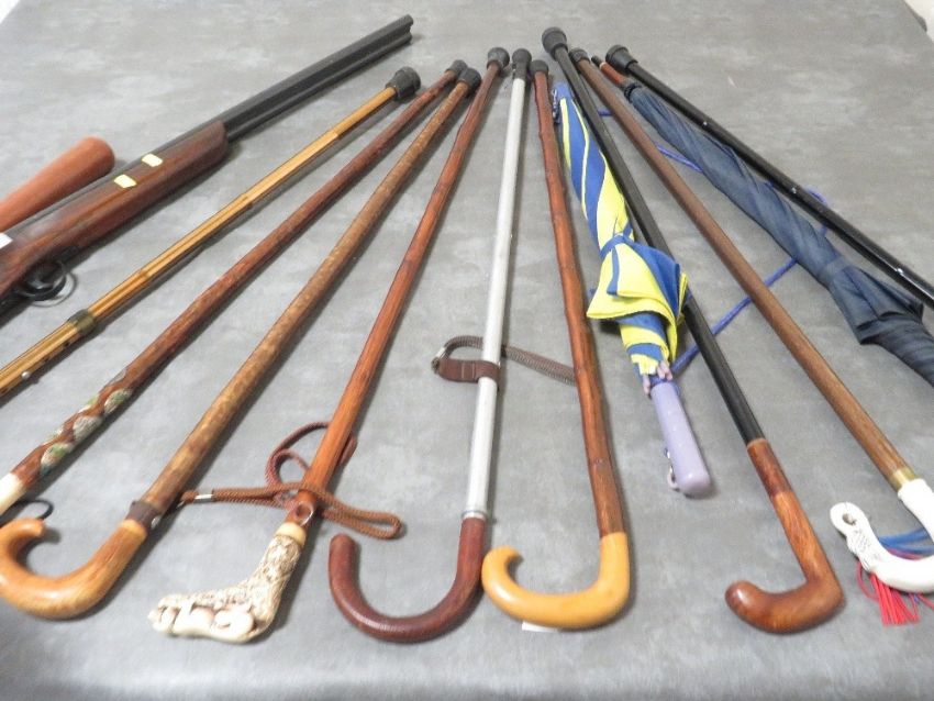 A collection of assorted walking sticks etc
