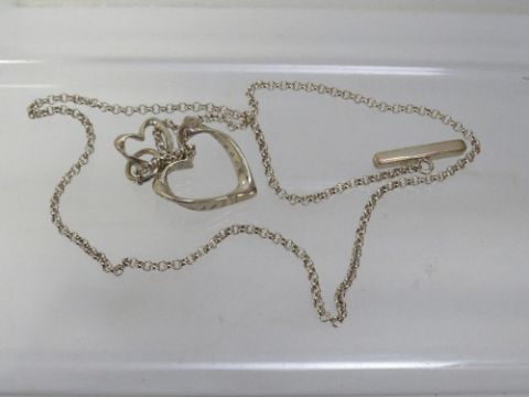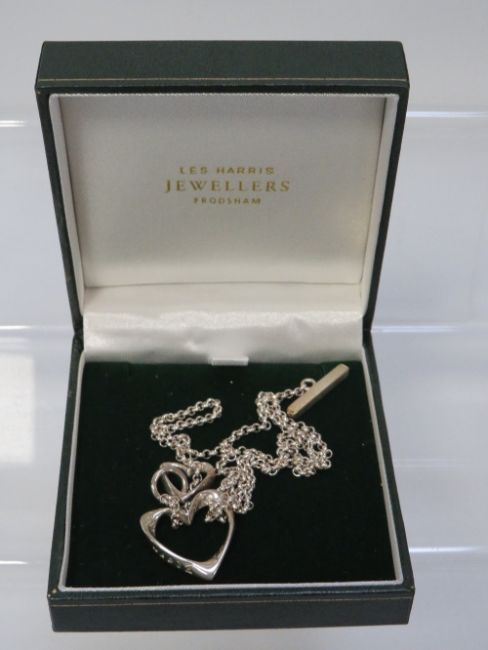 A 958 standard silver chain with heart pendant engraved internal love approx weight 15.6g