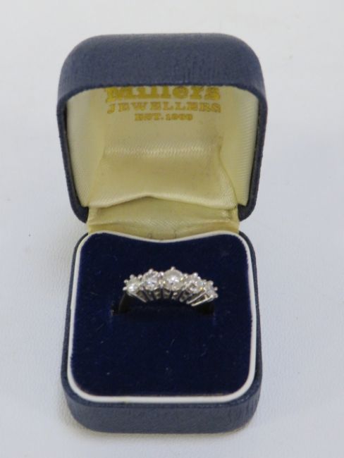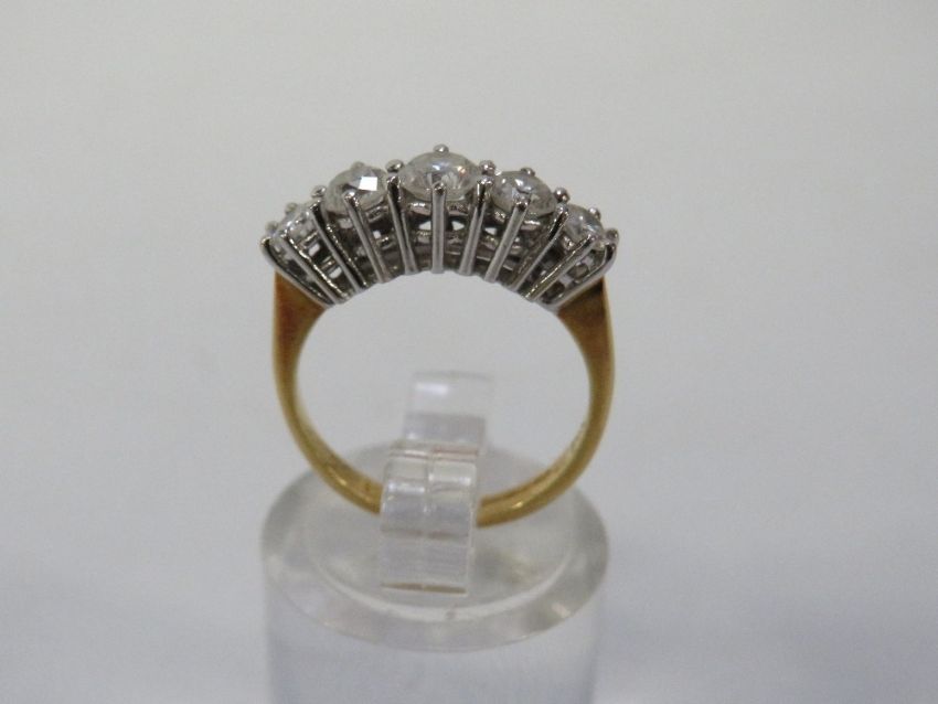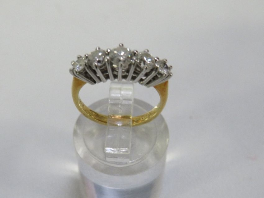 A hallmarked 18 carat gold five stone diamond ring with an estimated 1 carat of diamonds size I ½