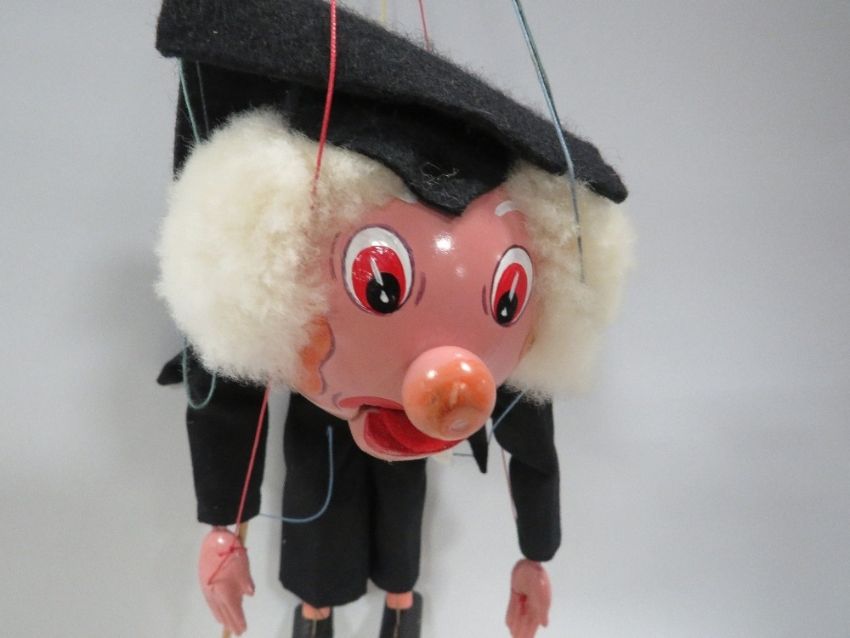 A boxed Pelham puppet The School master