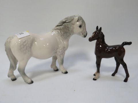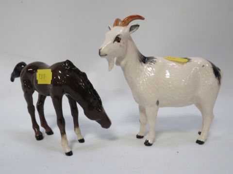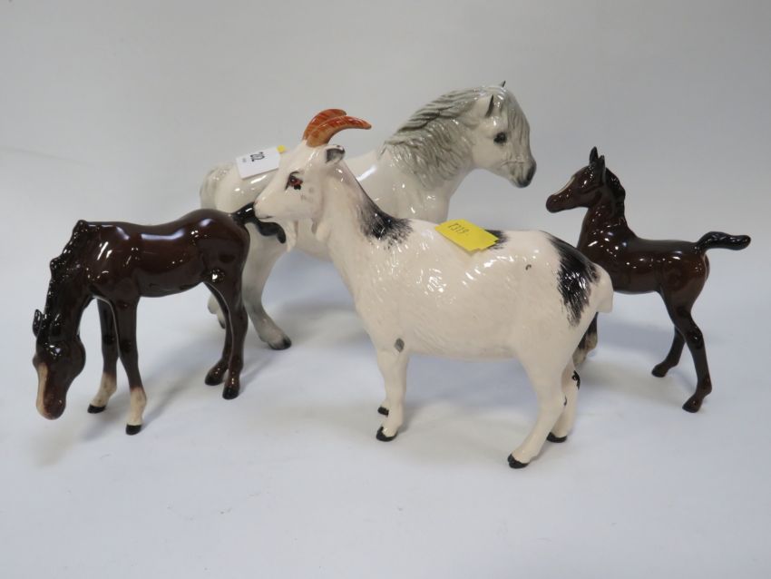 A Royal Doulton grey Shetland -marked as second together with two foals and a goat