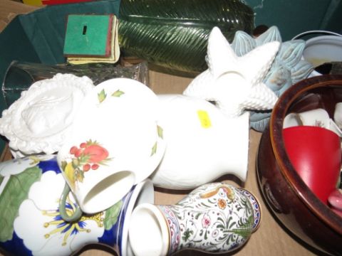 Three trays of mixed collectables to include Art Pottery, Wedgwood etc
