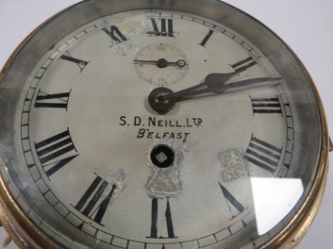 An eight day brass ships bulk head clock signed S. D Neill Belfast